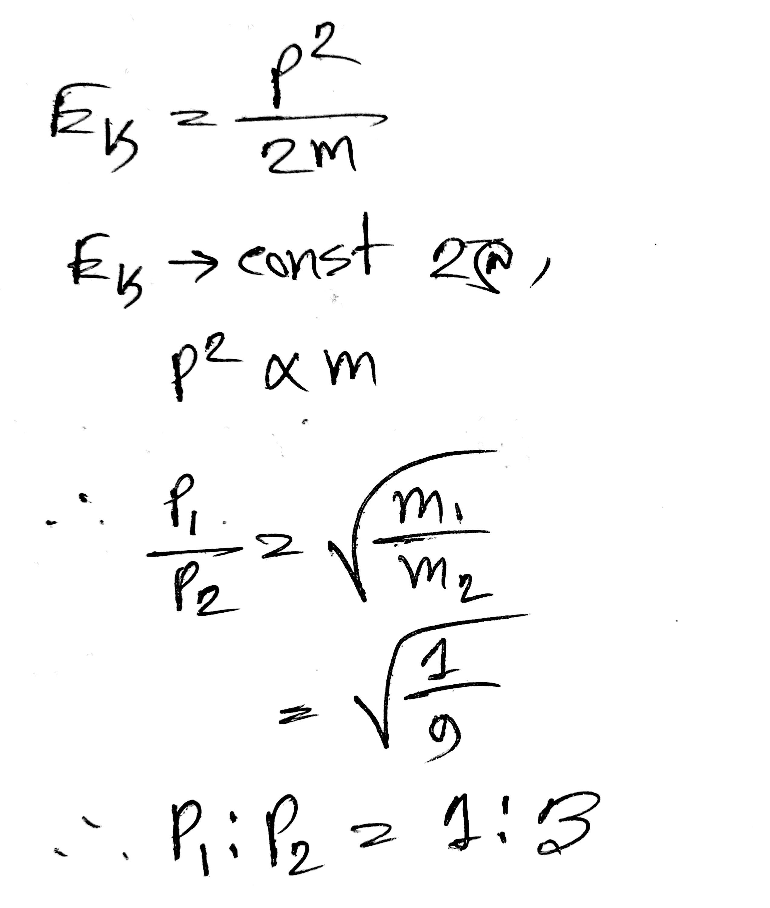 ভরের দুটি বস্তু সমান গতিশক্তিতে গতিশীল। এদের ভরবেগের অনুপাত কত?