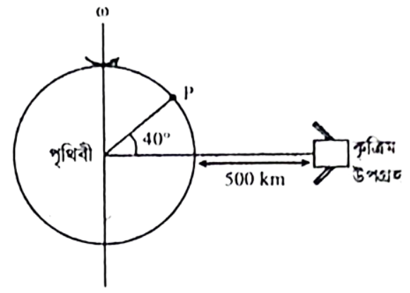 চিত্রে পৃথিবীর ভর ও ব্যাসার্ধ ও ভরের 1 টি বস্তু P বিন্দুতে অবন্থিত এবং ভূপৃষ্ঠ থেকে উচ্চতায় কৃত্রিম উপগ্রহ ঘুরছে।