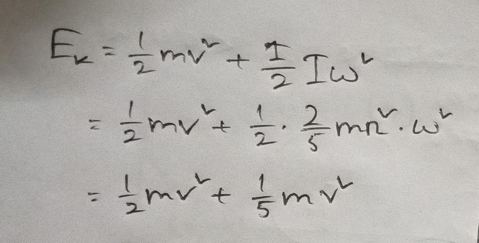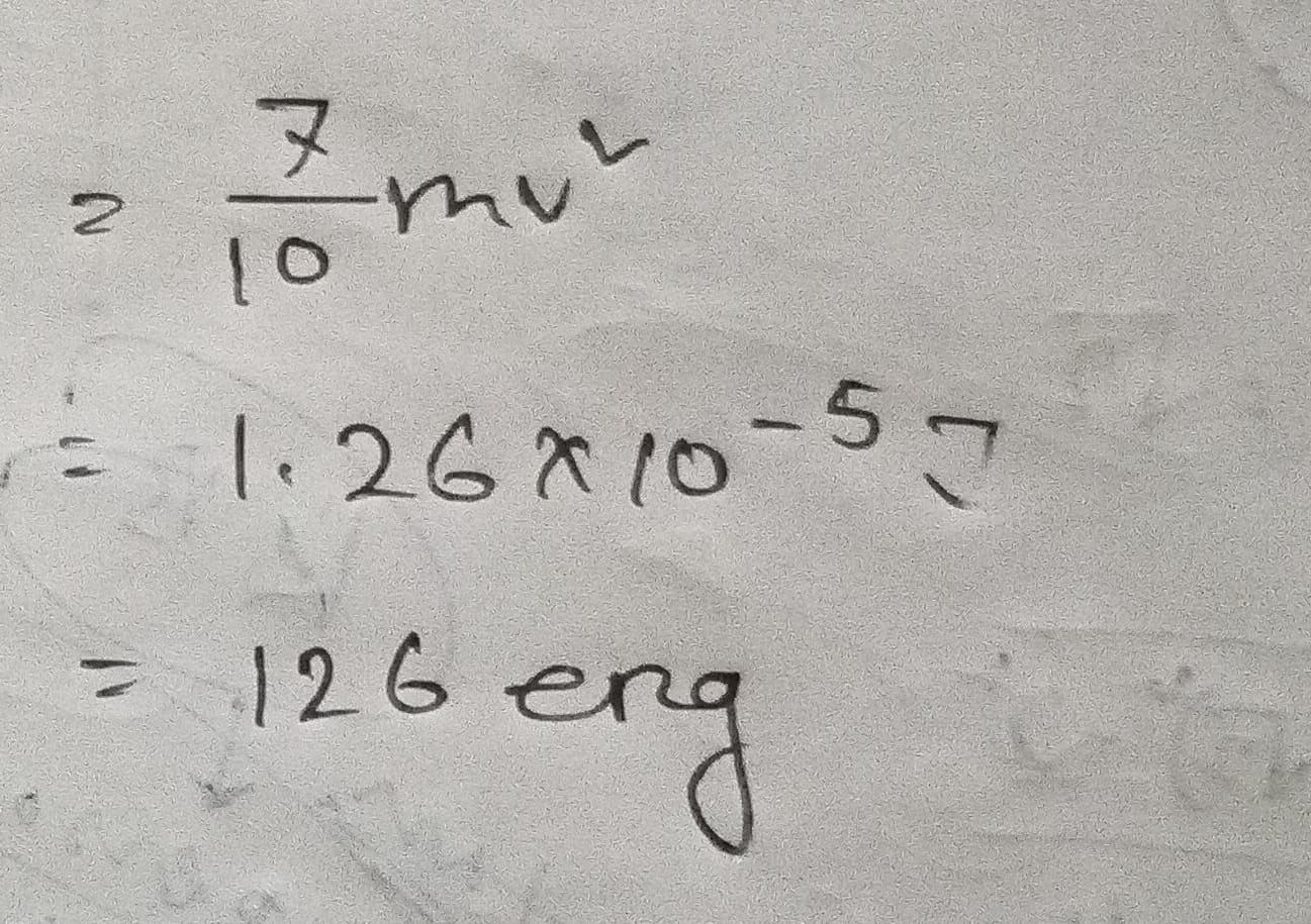 2cm ব্যাস এবং 20 g ভরের একটি নিরেট গোলক গড়িয়ে গড়িয়ে 3 cm s-1 বেগে চলছে। গোলকটির মোট গতিশক্তি কত?