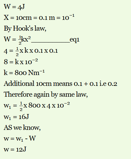 of work is required to stretch a spring through beyond its unstreched length. The extra work required to stretch it through additional shall be