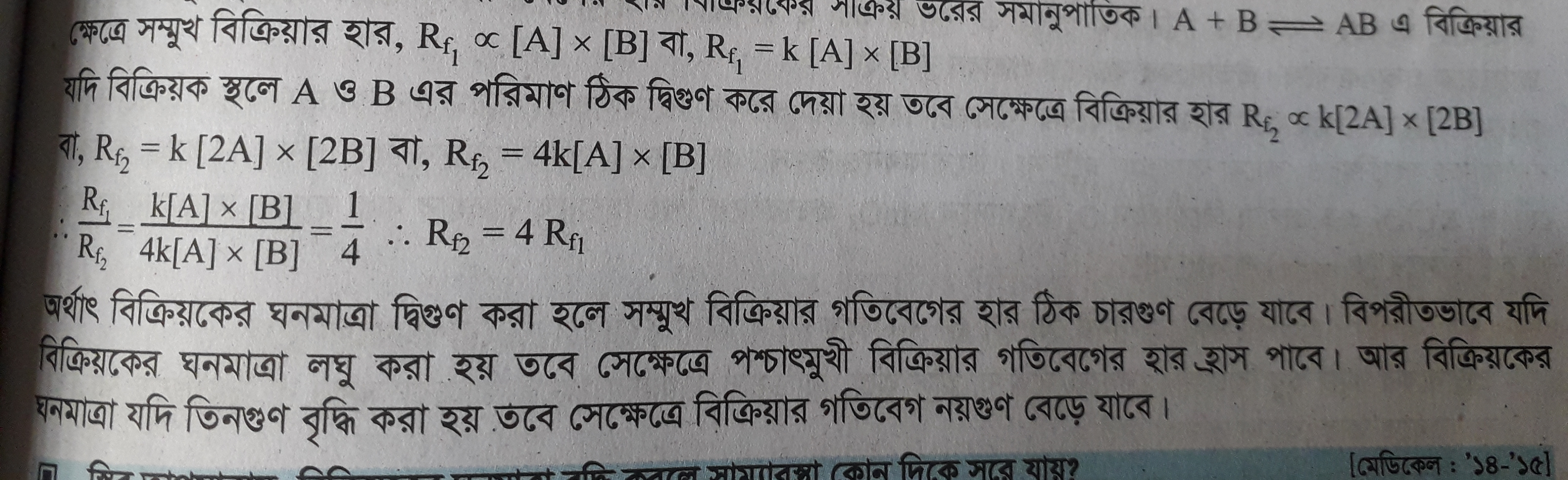 যদি উভয় বিক্রিয়কের ঘনমাত্রা দ্বিগুণ করা হয়, তাহলে বিক্রিয়ার হার বৃদ্ধি পাবে—