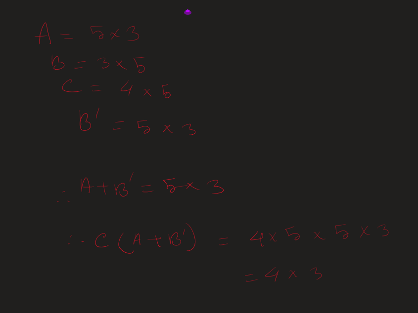 A, B, C ম্যাট্রিক্সগুলোর আকার যথাক্রমে এবং হলে এর আকার কত?