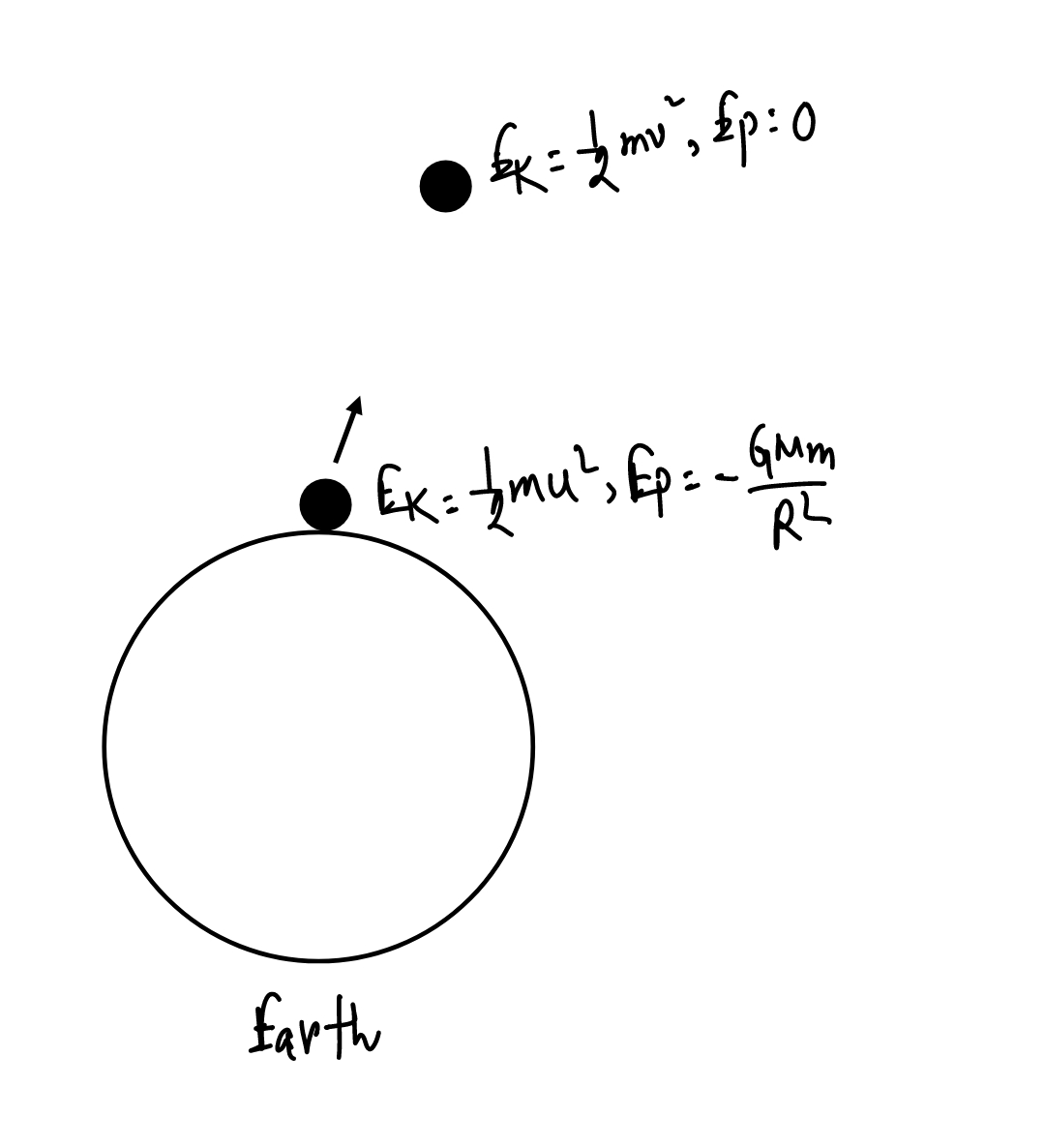 be the speed of the body when it is at infinite distance from the center of the earth and be speed of projection of the body from the earth's surface.