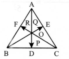 ∆ABC এর A, B, C কৌণিক বিন্দুগুলি হতে যথাক্রমে বিপরীত বাহুর উপর লম্ব বরাবর ক্রিয়া P, Q, R সাম্যাবস্থায় থাকলে P : Q : R এর মান কত?