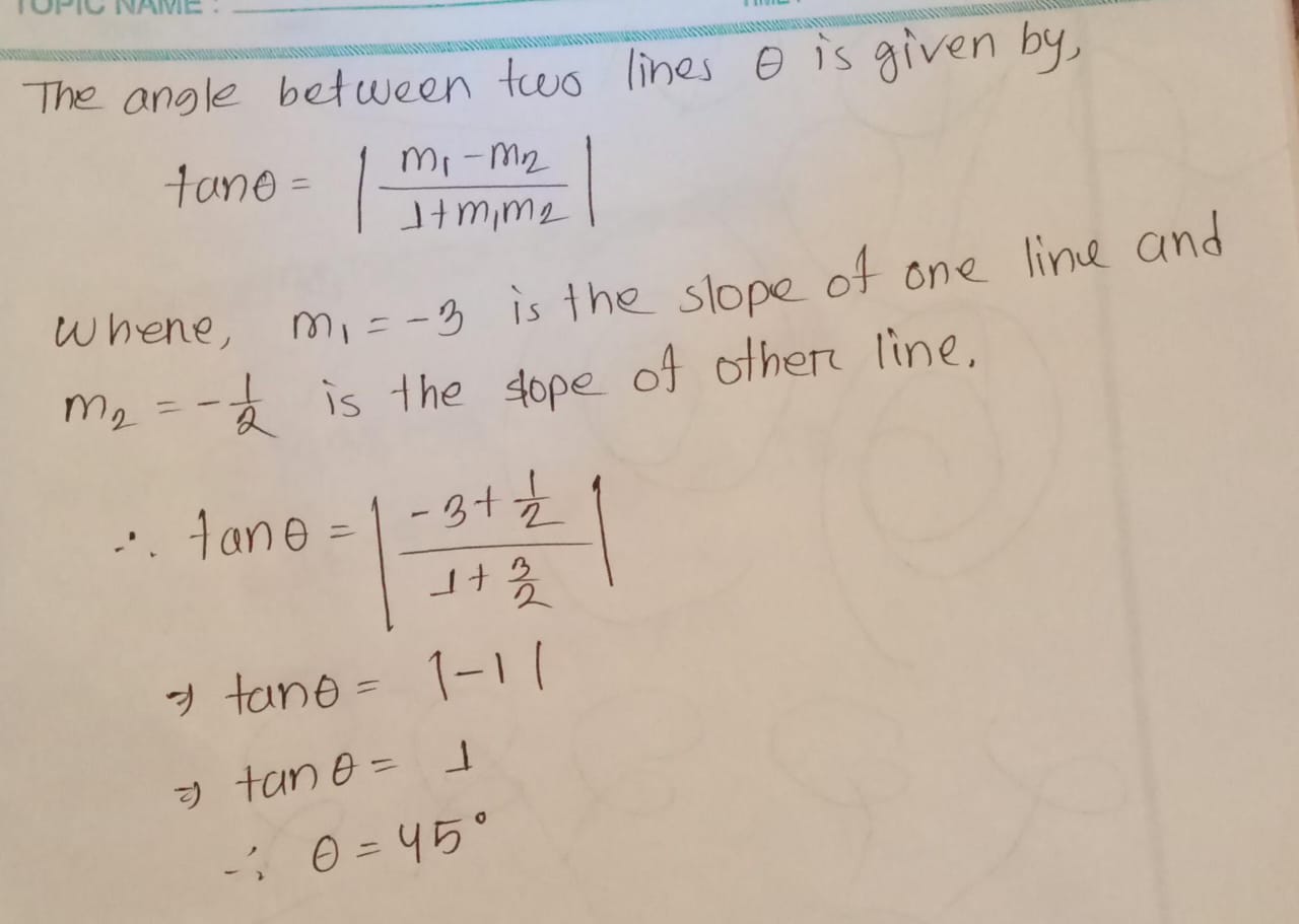 x−3y−80x-3y-80x−3y−80 এবং 3x−y+7=03x-y+7=03x−y+7=0 সরলরেখাদ্বয়ের অন্তর্ভুক্ত সূক্ষ্মকোণের মান কত?
