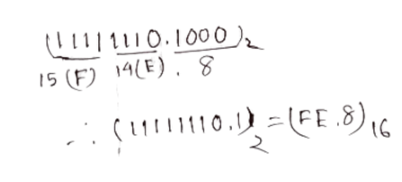 বাইনারি সংখ্যাকে হেক্সাডেসিমল সংখ্যায় রূপান্তর করতে চারটি করে বাইনারি ডিজিটকে ১টি হেক্সাডেসিমল ডিজিট হিসেবে ধরে নিতে হবে, দশমিকের বাম পাশের ডিজিট গুলো ডান দিক থেকে গননা করতে হবে এবং ডান পাশের গুলো বাম দিক থেকে গননা করতে হবে। ৪টি বাইনারি ডিজিটের কম থাকলে শূন্য বসাতে হবে।