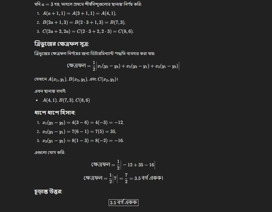 হলে, ত্রিভুজের ক্ষেত্রফল কত বর্গ একক?