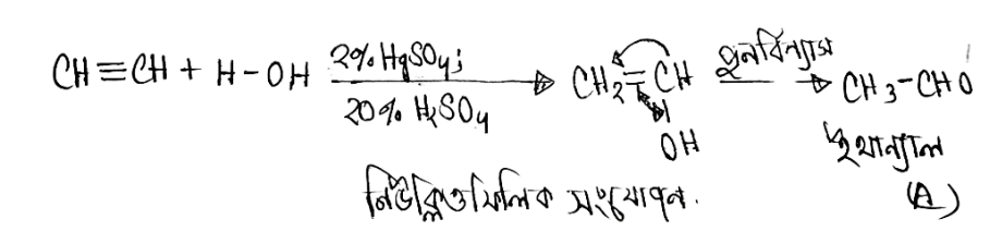 A যৌগে কার্বনিল মূলক থাকে। তাই নিউক্লিওফিলিক সংযোজন বিক্রিয়া দেয়।