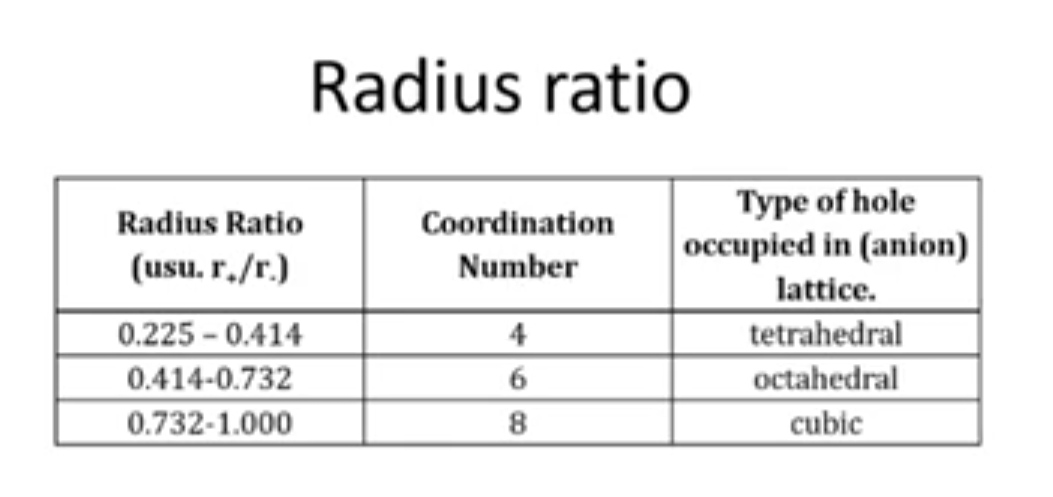যদি ব্যাসার্ধ অনুপাত 0.414 থেকে 0.732 এর মধ্যে হয়, তাহলে সন্নিবেশ সংখ্যা সাধারণত 6 হয়।
