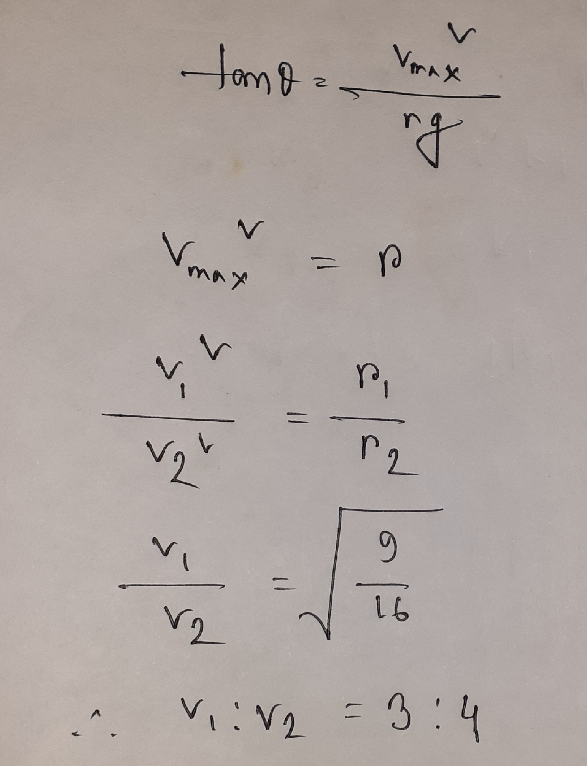 P ও Q স্থানে যথাক্রমে 9m এবং 16m ব্যাসার্ধের দুটি বাঁকের রাস্তা আছে। প্রত্যেকটি বাঁকের ব্যাংকিং কোণ 3°। (উভয় স্থানে রাস্তার প্রন্থ 5 m)