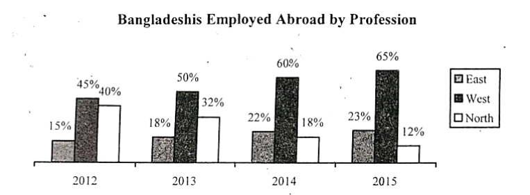 The graph below shows the number of the Bangladeshis employed abroad by profession. Describe the graph in 150 words. You should effectively highlight the information given in the graph.