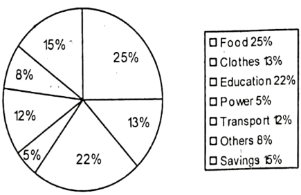 Look at the chart. It shows the distribution of percentages of a family's income into different categories. Now; analyze the chart in 150 words focusing the main aspects.