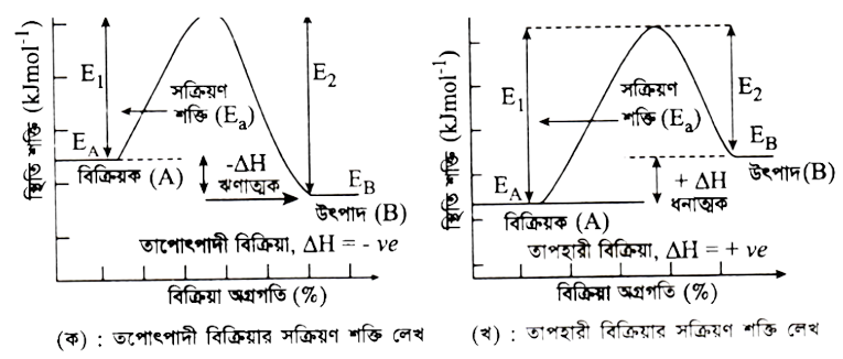 C এবং B অবস্থানের শক্তির পার্থক্যই বিক্রিয়াটির সক্রিয়ণ শক্তি