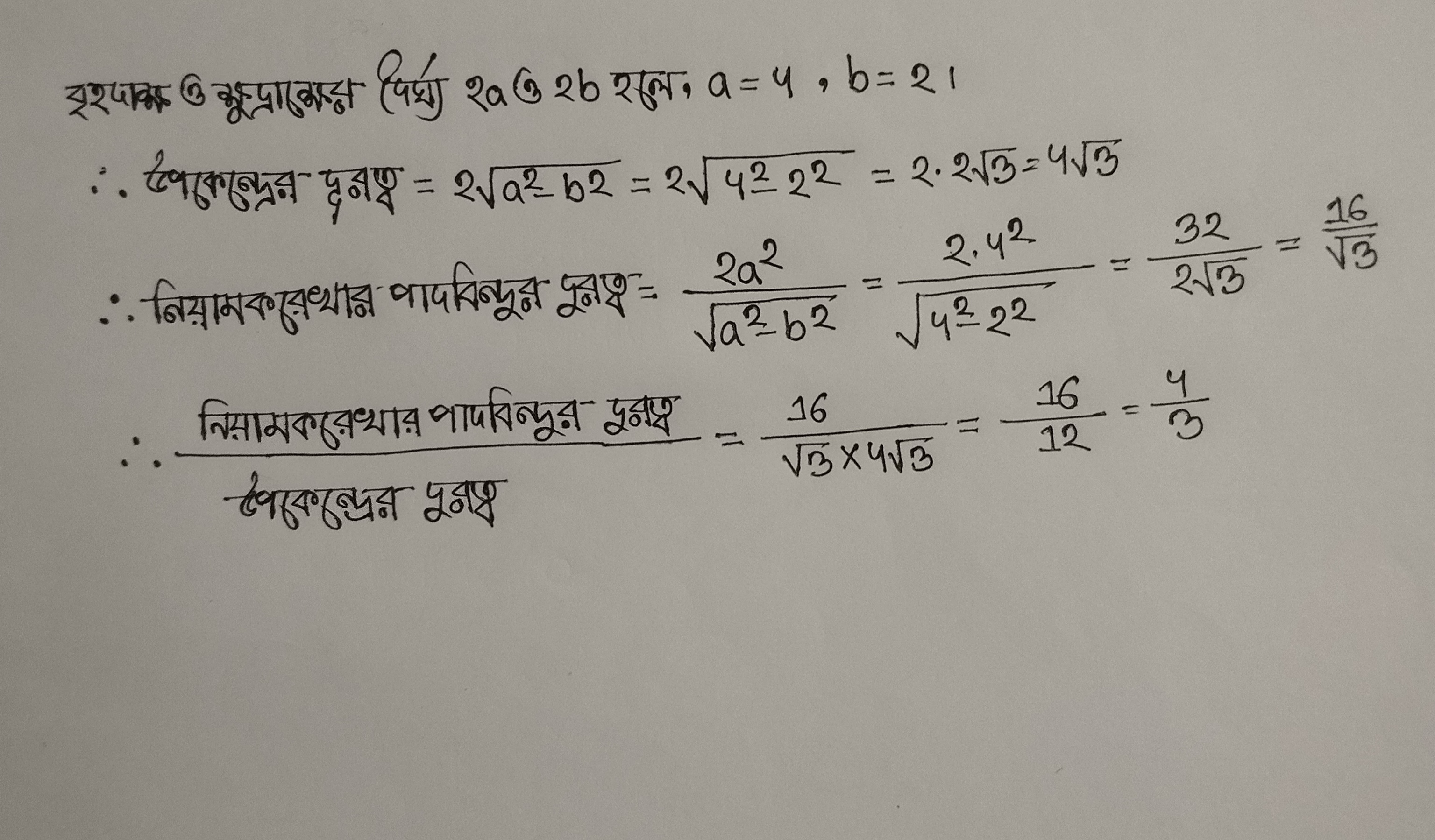 উপবৃত্তটির কেন্দ্র হতে এর নিয়ামক রেখার পাদবিন্দুর দুরত্ব ও উপকেন্দ্রের দূরত্বের অনুপাত কত?