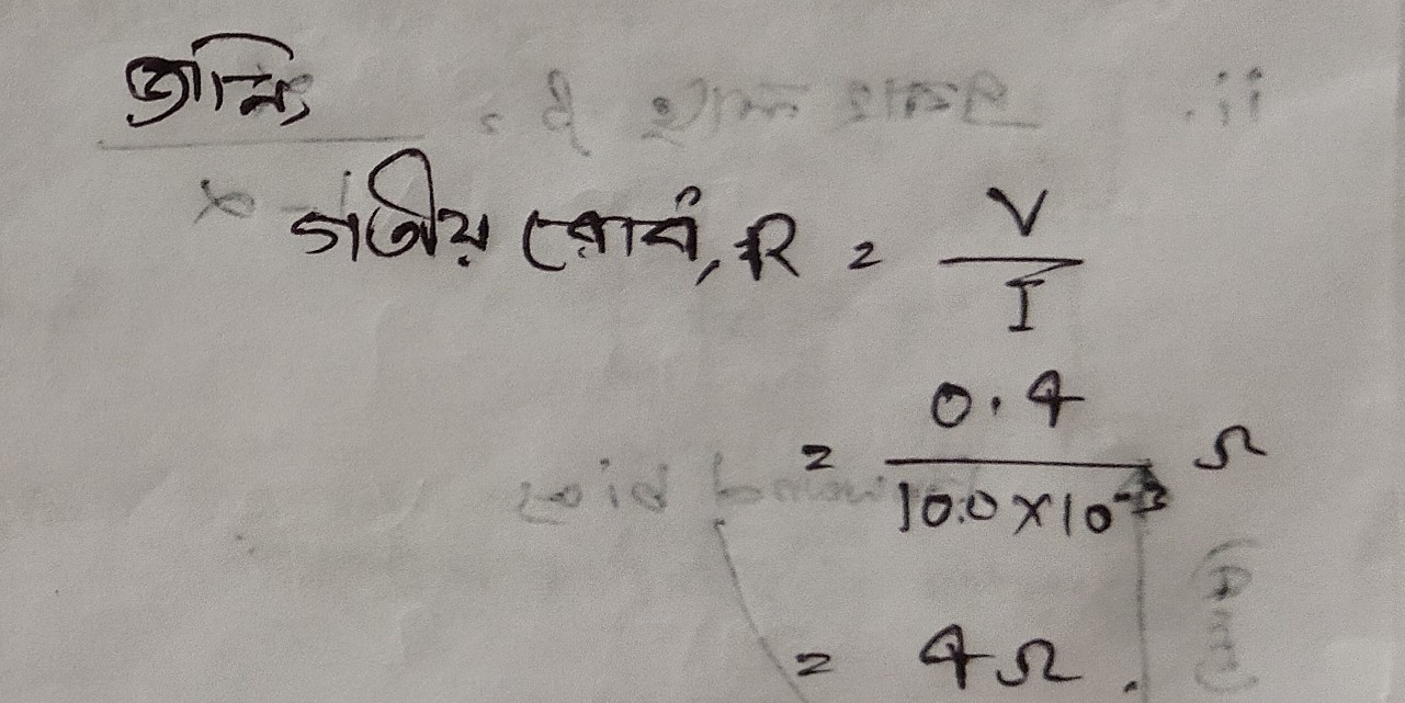 একটি p-n জাংশনের সম্মুখ বায়াসে 0.4V বিভব পার্থক্যের জন্য 100 mA তড়িৎ প্রবাহের পরিবর্তন হয়। জাংশনটির গতীয় রোধ -
