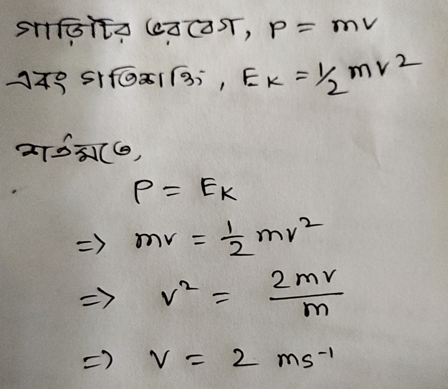 একটি গাড়ির ভরবেগের মান তার গতিশক্তির সমান। গাড়িটির বেগ কত?