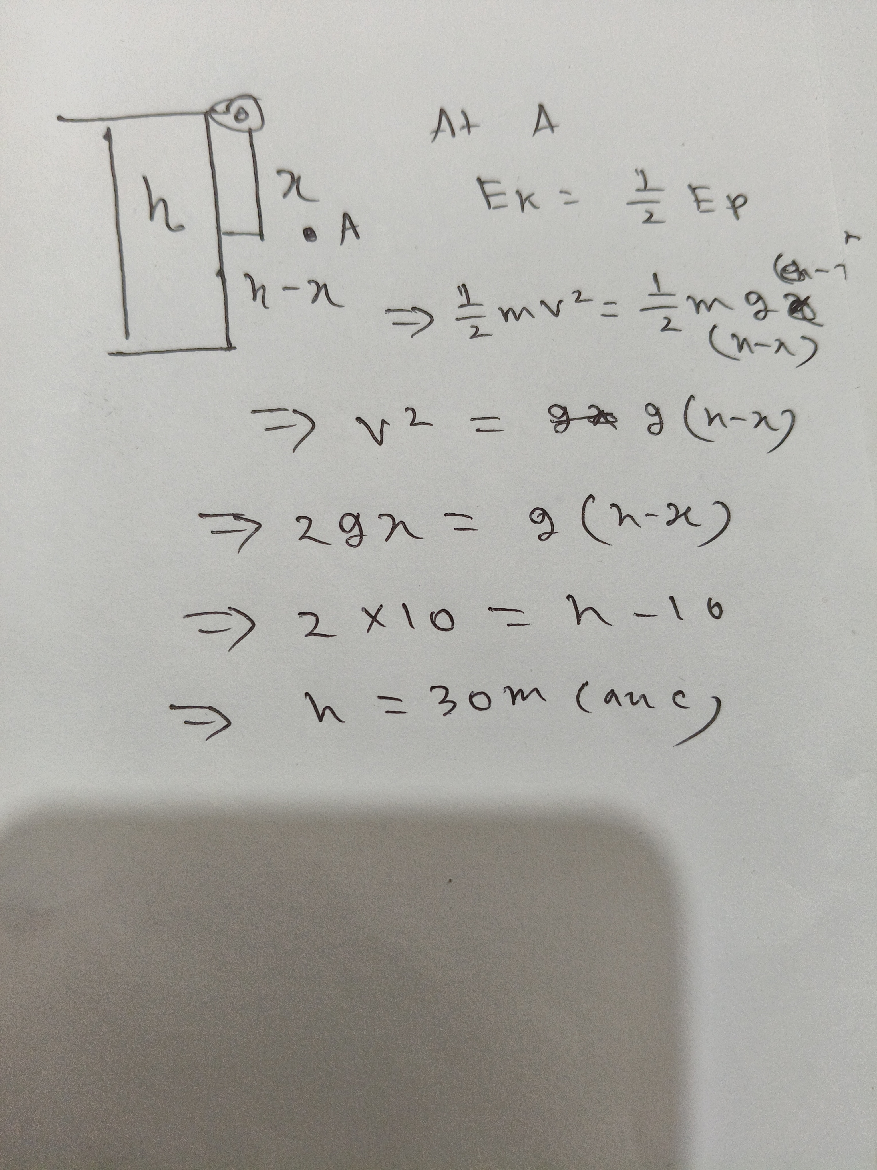 30 m উচ্চতা থেকে একটি বস্তুকে বিনা বাধায় পড়তে দিলে কোন স্থানে গতিশক্তি বিভবশক্তির দ্বিগুণ হবে?