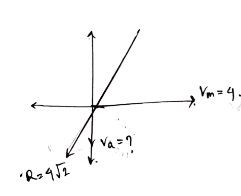 একটি লোক 4 km/h বেগে সোজা পূর্ব দিকে যাওয়ার সময় দেখল বাতাস উত্তর পূর্বদিক হতে 4√2 km/h বেগে প্রবাহিত হচ্ছে। বাতাসের প্রকৃত গতিবেগ-