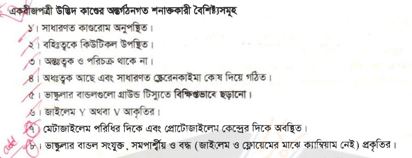 একবীজপত্রী ও দ্বিবীজপত্রী উদ্ভিদের মূল ও কান্ডের শনাক্তকারী বৈশিষ্ট্য