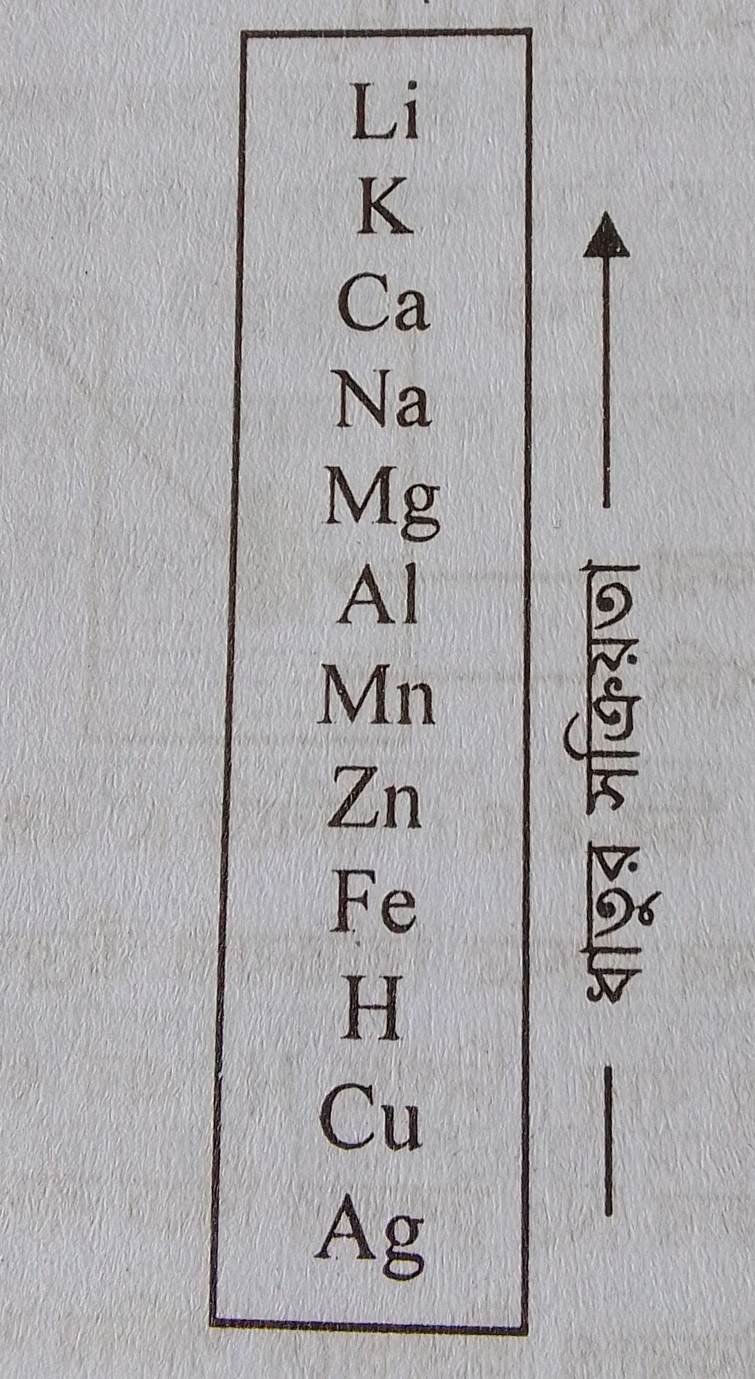 জিংক এর সক্রিয়তা বেশি হয় কপার সালফেট দ্রবণে Zn রাখলে Cu অধঃক্ষিপ্ত হবে এবং জিংক সালফেট তৈরি হবে।