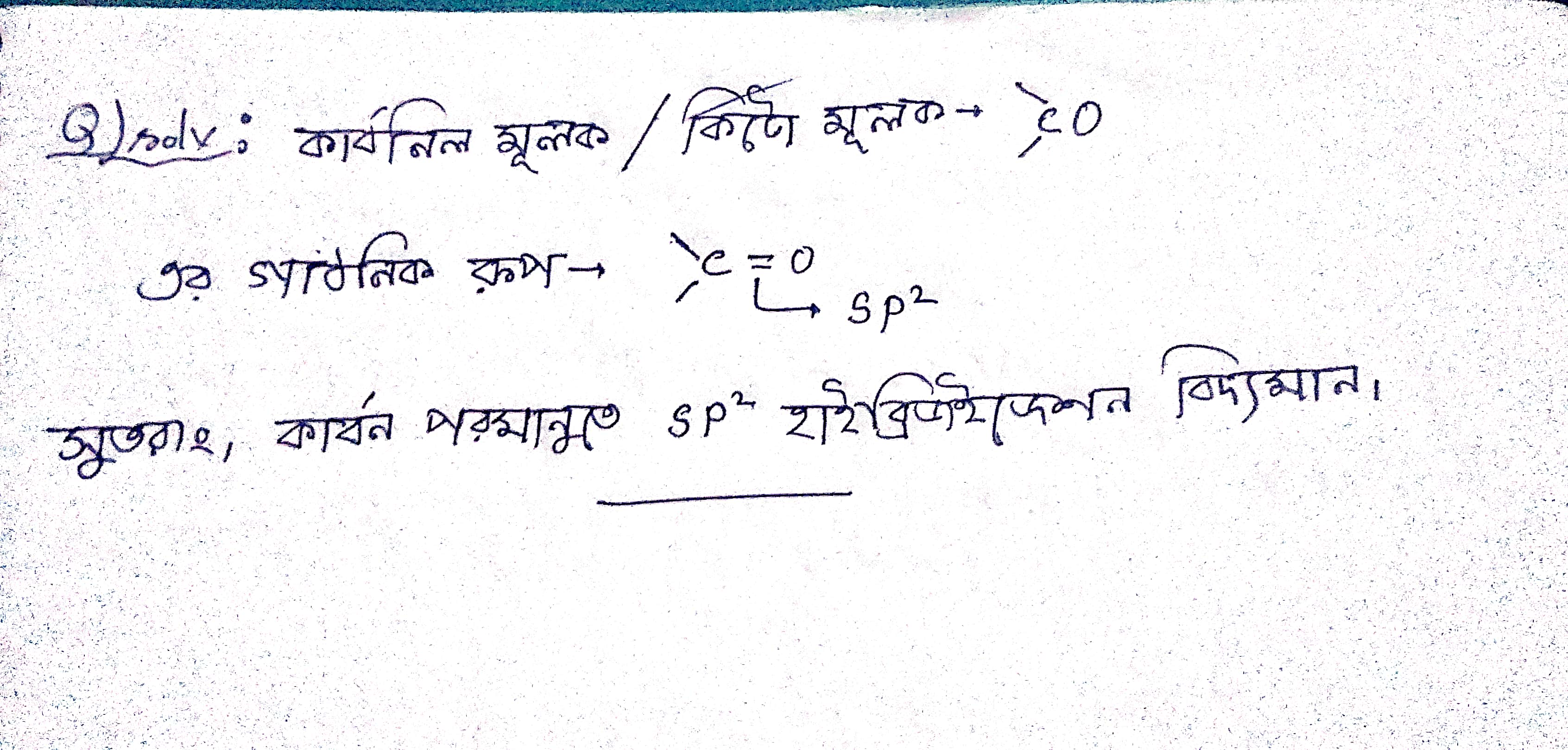 কার্বনিল মূলকের কার্বন পরমাণুতে কোন হাইব্রিডাইজেশন আছে?