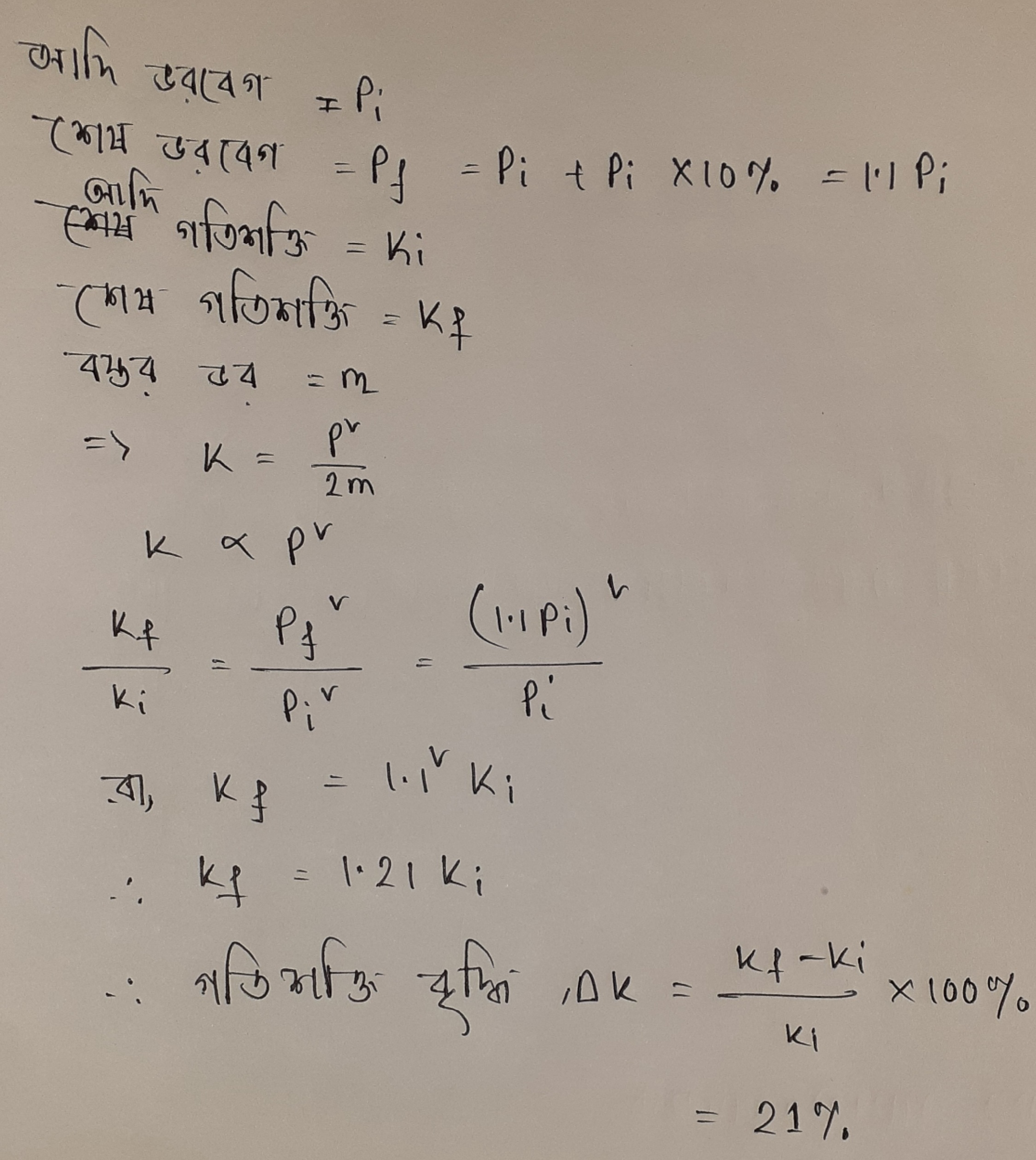 কোনো বস্তুর ভরবেগ 10% বৃদ্ধি করলে উহার গতিশক্তি কত বৃদ্ধি পায়?