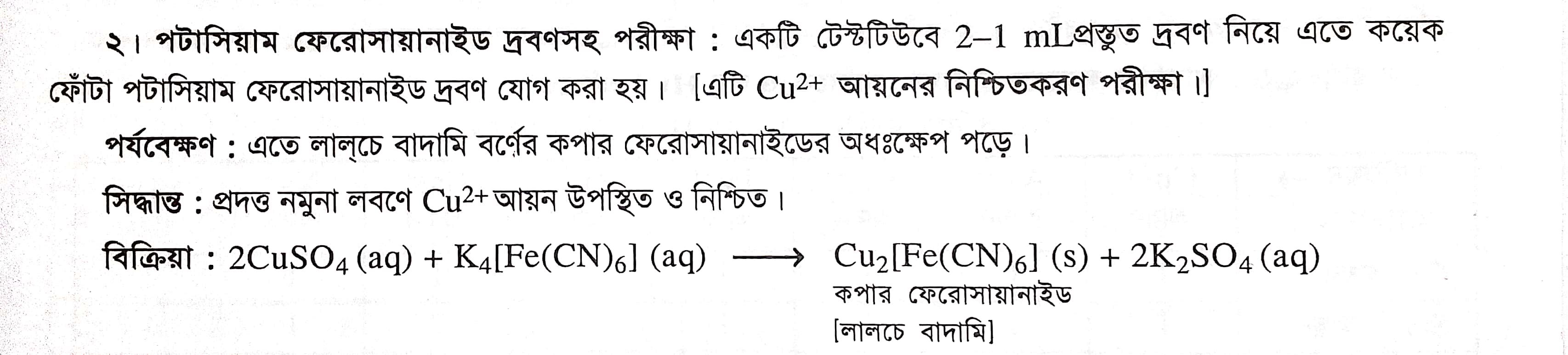 পটাশিয়াম ফেরোসায়ানাইডের সাহায্যে আয়ন শনাক্তকরণ