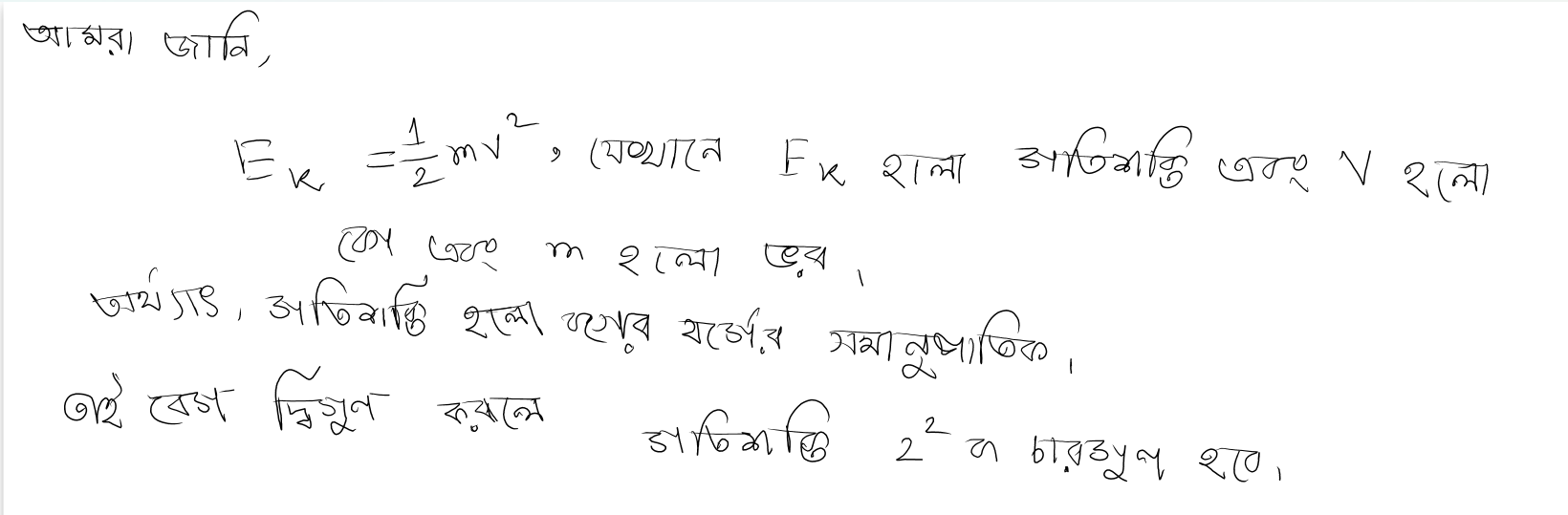 একটি রাইফেলের গুলির বেগ দ্বিগুণ করলে তার গতিশক্তি কতগুণ বাড়বে?