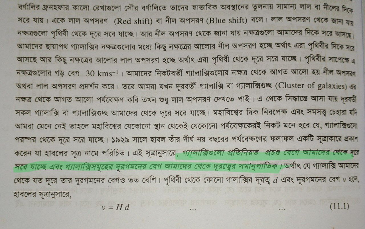 গ্যালাক্সিগুলির দূরে সরে যাওয়ার বেগ পৃথিবী থেকে এদের দূরত্বের-