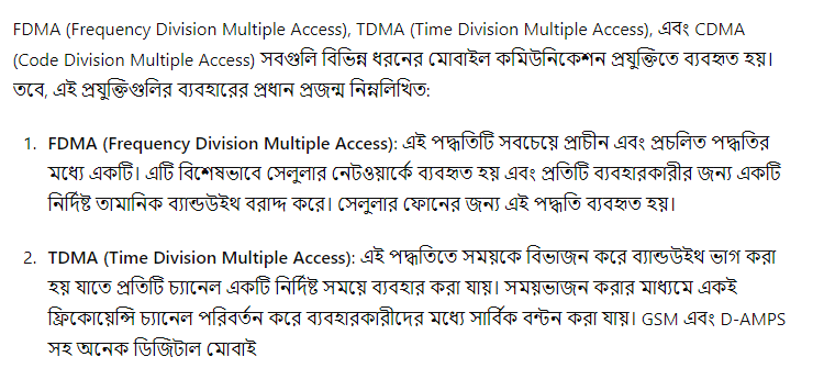 (Code Division Multiple Access) সবগুলি বিভিন্ন ধরনের মোবাইল কমিউনিকেশন প্রযুক্তিতে ব্যবহৃত হয়।