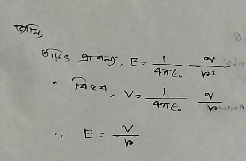 তড়িৎ প্রাবল্য ও তড়িৎবিভবের মধ্যে সম্পর্ক নিম্নের কোনটি?