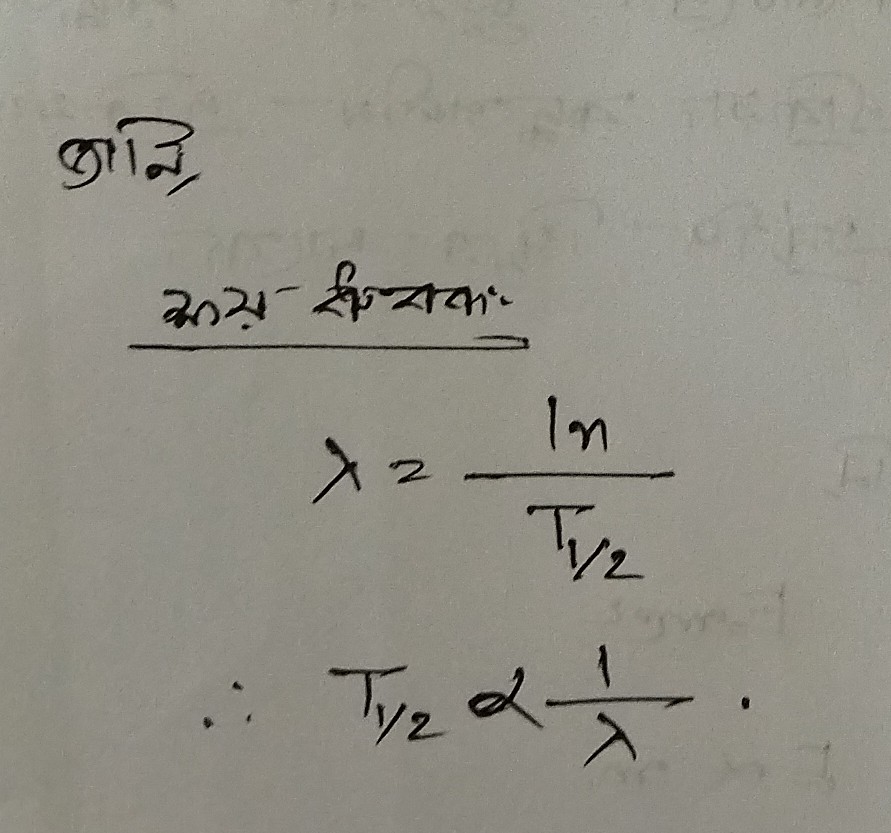 তেজস্ক্রিয় পদার্থের অর্ধায়ু এর ক্ষয় ধ্রুবকের--