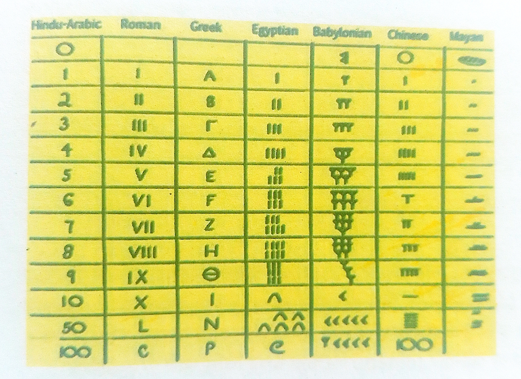 রোমান সংখ্যা পদ্ধতি শুরু হয় ১ থেকে।১০ কে রোমান সংখ্যা তে " X “ দ্বারা প্রকাশ করা হয়। নিচে রোমান সংখ্যা পদ্ধতি সহ আরো বিভিন্ন সংখ্যা পদ্ধতির উদাহরণ দেওয়া হলো -