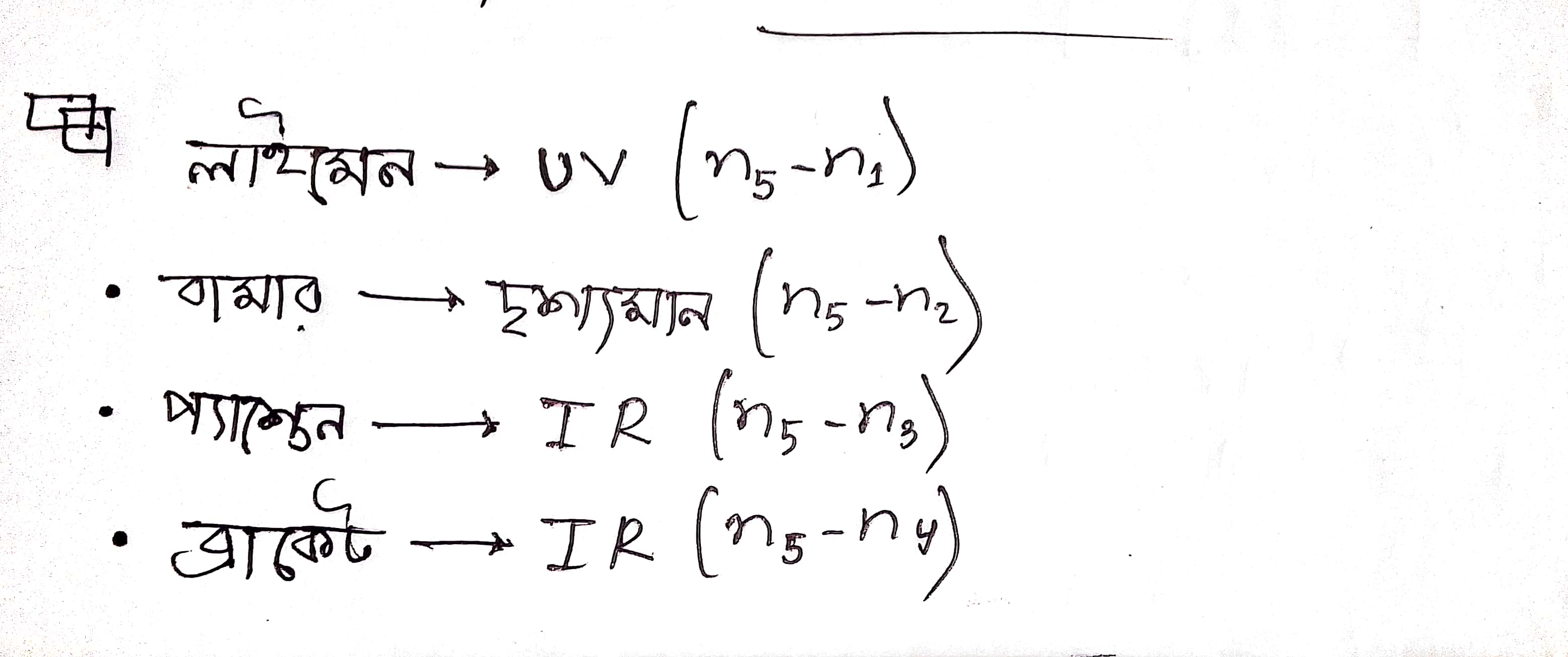 নিচের কোন ইলেকট্রনীয় স্থানান্তর হাইড্রোজেন পরমাণুর ক্ষেত্রে দৃশ্যমান আলোর নির্গমণের ক্ষেত্রে প্রযোজ্য।