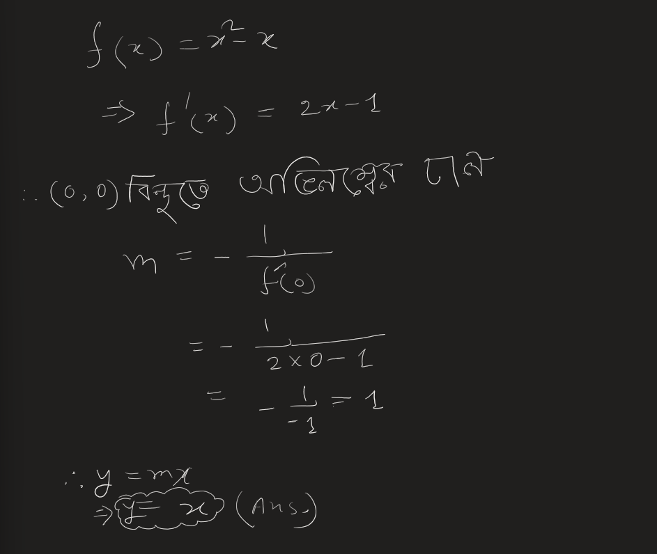 ফাংশনটির মূল বিন্দুতে অভিলম্বের সমীকরণ কোনটি?