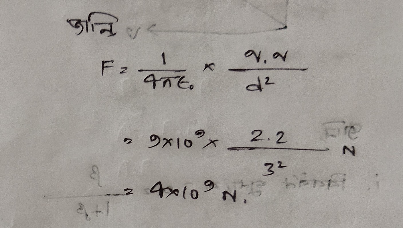 পরস্পর থেকে 3m দূরত্বে বায়ু মাধ্যমে +2C এর দুটি চার্জ স্থাপন করলে এদের মধ্যকার বল কত হবে?