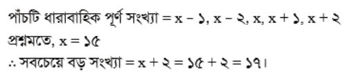 পাঁচটি ধারাবাহিক পূর্ণসংখ্যার গড় হলো ১৫ সবচেয়ে বড় পূর্ণ সংখ্যা কত?