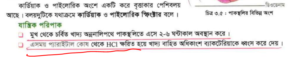 প্যারাইটাল কোষ বা অক্সিনটিক কোষ | হাইড্রোক্লোরিক অ্যাসিড তৈরি করে। |