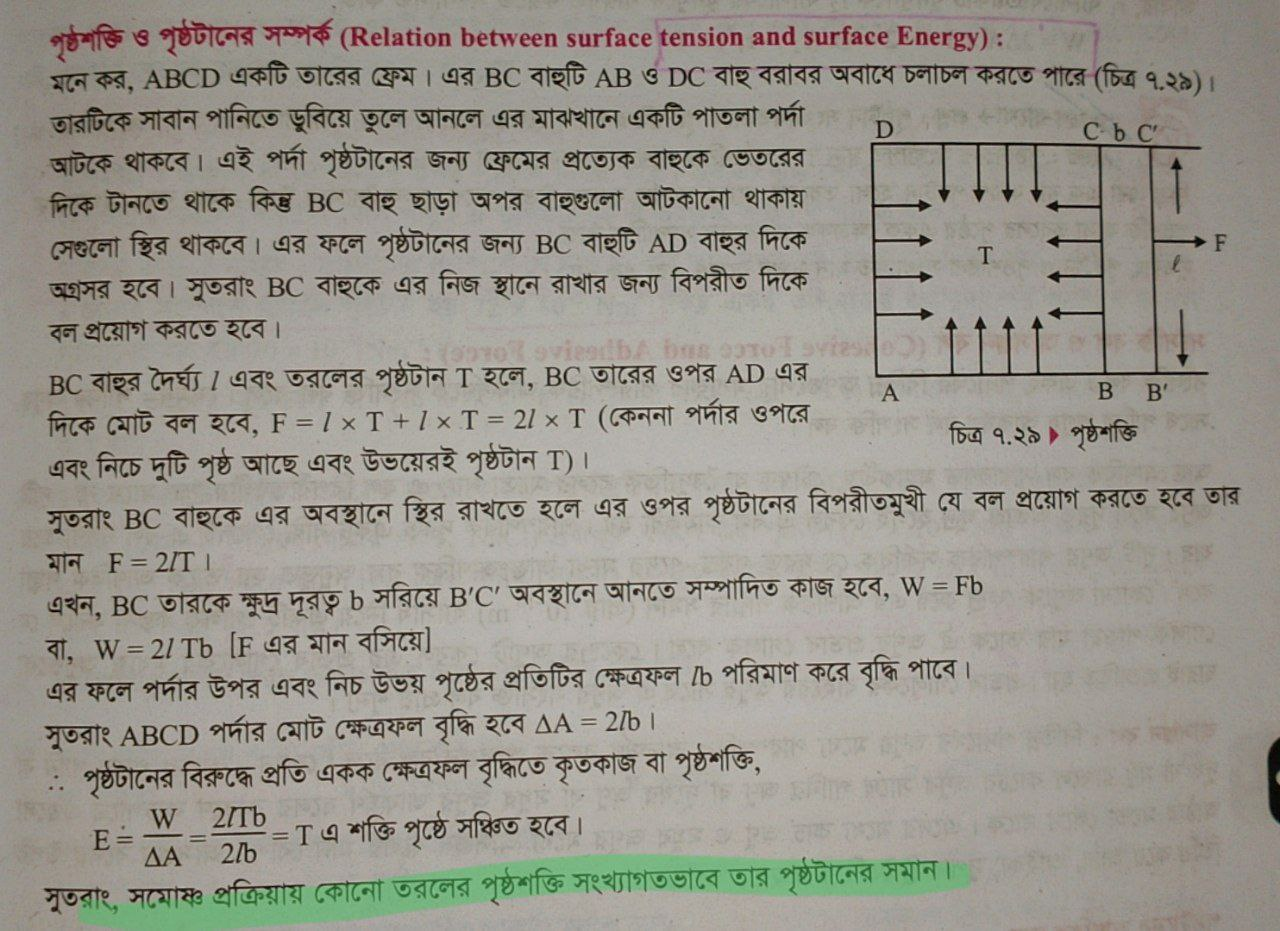পানির পৃষ্ঠটান 0.06N/m হলে এর পৃষ্ঠশক্তি-