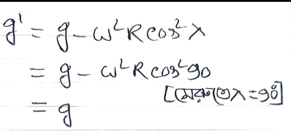 পৃথিবীর আবর্তন বন্ধ হয়ে গেলে মেরু অঞ্চলে ‘g' এর মানের কীরূপ পরিবর্তন হবে ? - চর্চা