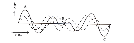 একটি সনোমিটারে সদৃশ ও সমদৈর্ঘ্যের তিনটি তার A, B ও C-এ যথাক্রমে 200, 225 ও 250 N বল ঝুলিয়ে টানটান করা হলো। A তারটিকে শব্দায়িত করায় 100 Hz কম্পাঙ্কের শব্দ উৎপন্ন হলো। দুটি করে তার একসাথে শব্দায়িত করলে বিট উৎপন্ন হয় কি-না পরীক্ষা করা হলো।