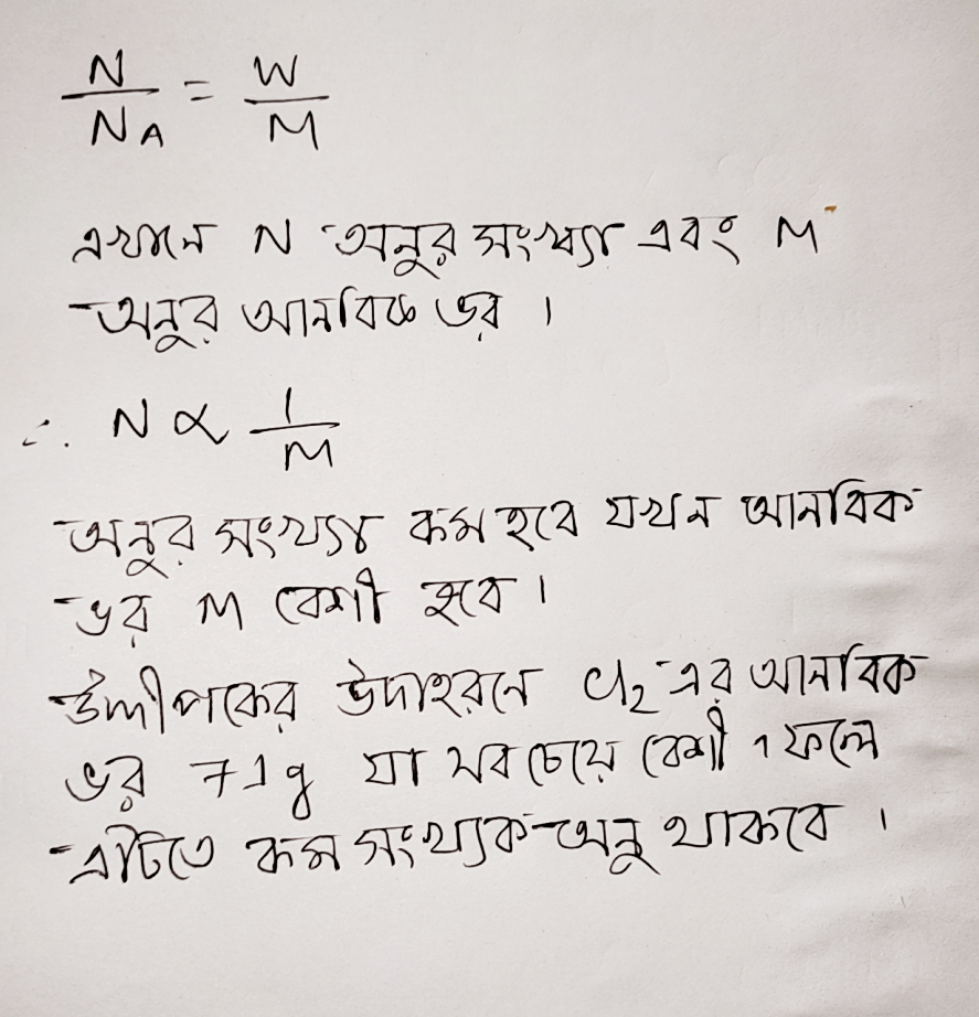 যদি নিম্নোক্ত গ্যাসগুলোর ভর একই হয় তবে কোনটিতে সর্বাপেক্ষা কম সংখ্যক অণু আছে?