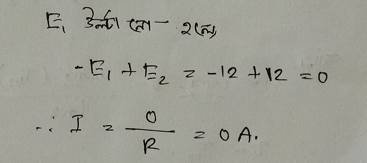 যদি বর্তনীর E, কোষকে উল্টিয়ে সংযোগ দেওয়া হয়, তাহলে বর্তনীর প্রবাহমাত্রা?