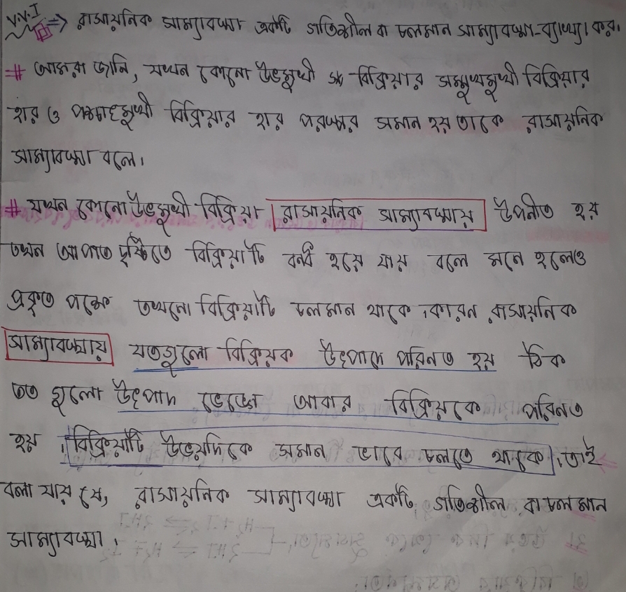 সম্মুখ বিক্রিয়ার বেগ এবং পশ্চাৎ বিক্রিয়ার বেগ সমান হলে বিক্রিয়াটি—