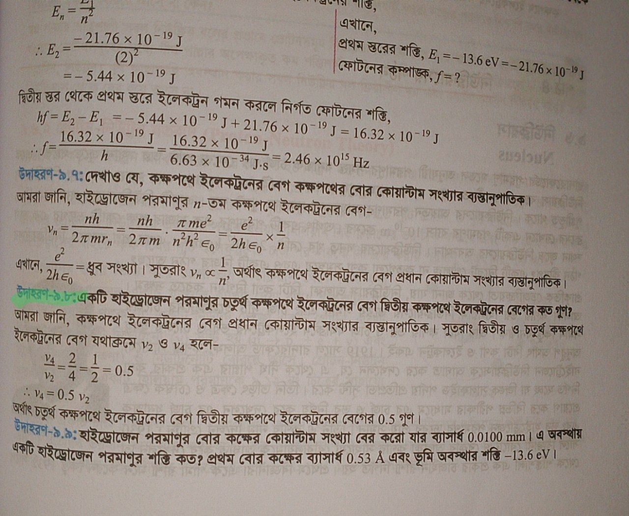 হাইড্রোজেন পরমাণুর চতুর্থ কক্ষে ইলেকট্রনের বেগ দ্বিতীয় কক্ষের বেগের কত গুণ?
