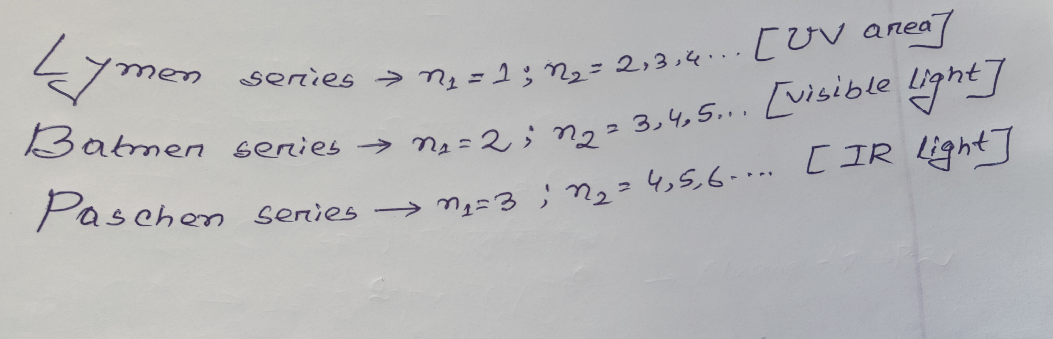 হাইড্রোজেন পরমাণুর বর্ণালীর কোন সিরিজটি অতিবেগুণি অঞ্চলে রেখা দেখায়?